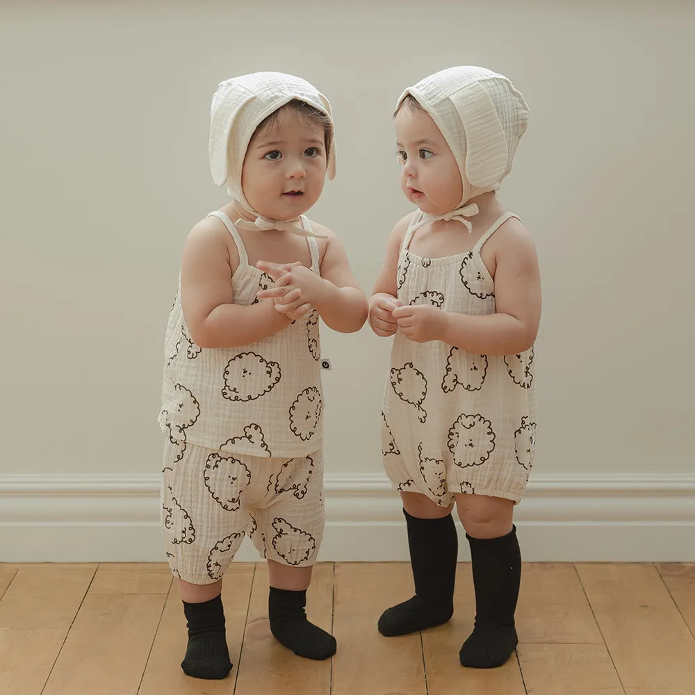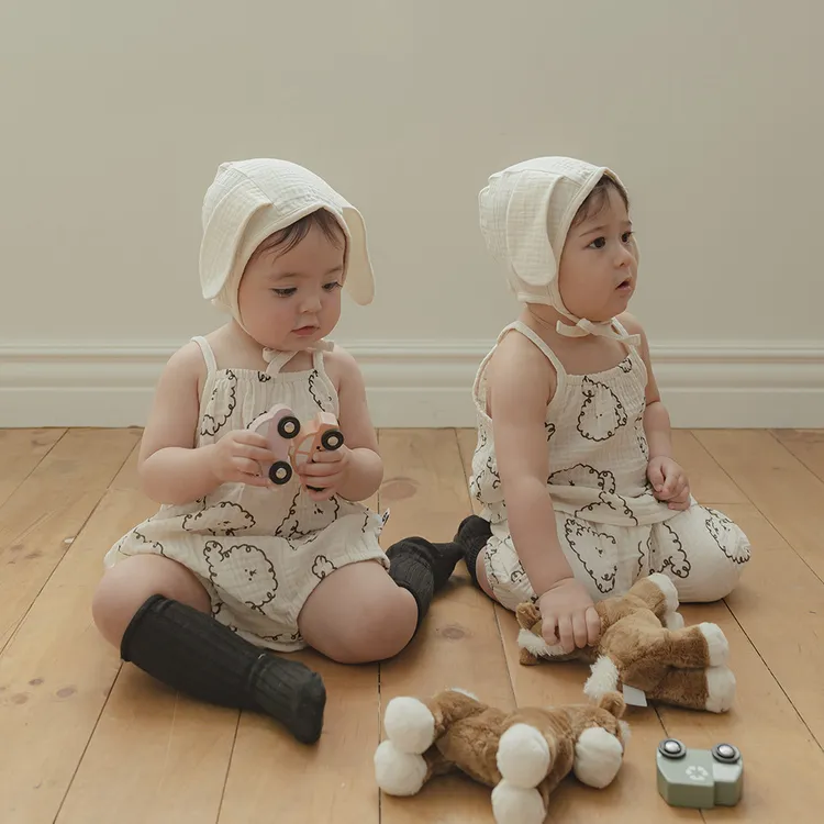 無袖燈籠褲套裝-白色狗狗